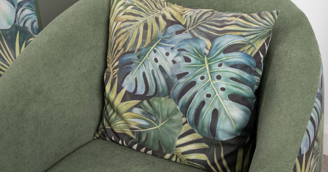 Маттиас — оригинальное кресло готовое стать акцентом в интерьере. Яркий тропический принт «монстера» на спинке мгновенно сделает комнату живой и современной.