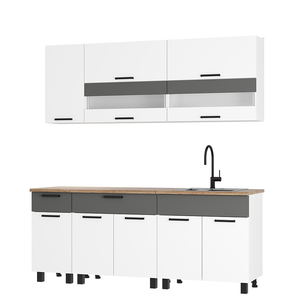 Кухонный гарнитур Монтана 2000 мм белый/графит (БТС) в Верхнем Тагиле - verhnij-tagil.mebel-e96.ru