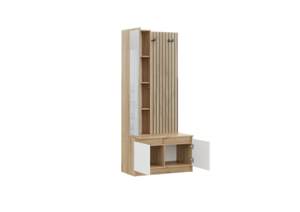 1. Щит для одежды с крючками и фотопечатью (имитация реек).