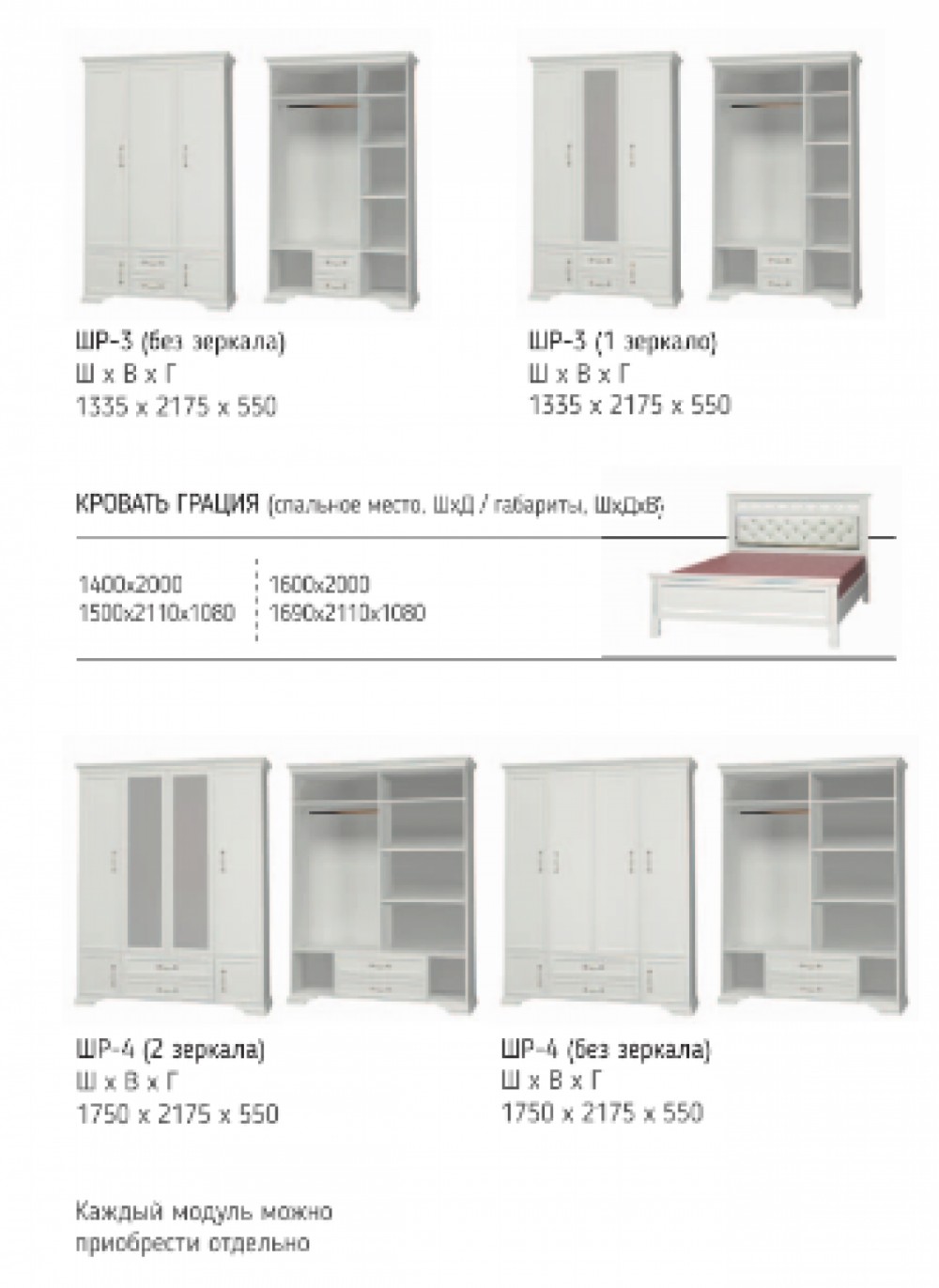 Артикул: A31602Шкаф 1700 мм ШР-4 без зерк.. ГРАЦИЯ (лак) Белый/Белый (БМ)