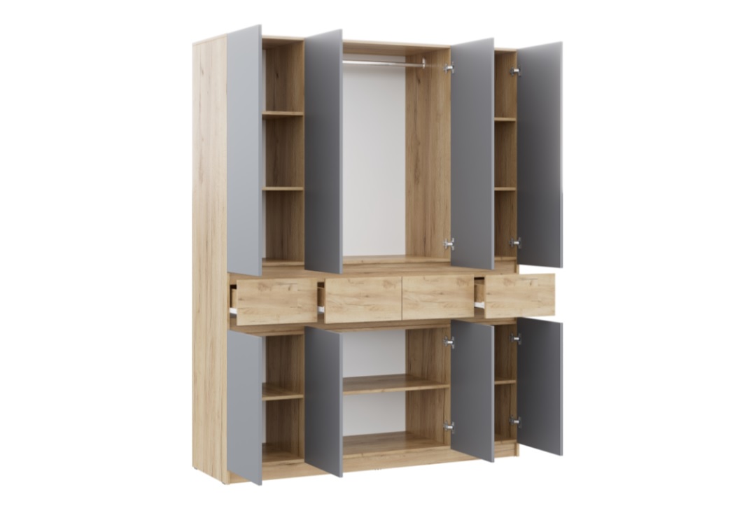 Шкаф 1600 мм Бостон Лайт ШК-004 серый (Стиль)